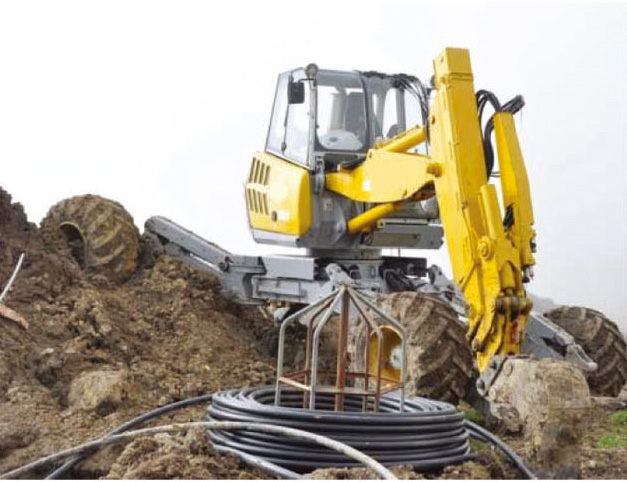 Walking excavator is applied in line construction, groove excavation, digging line tower and lifting and transportation of heavy weights in construction of electric power communication equipments outdoors.